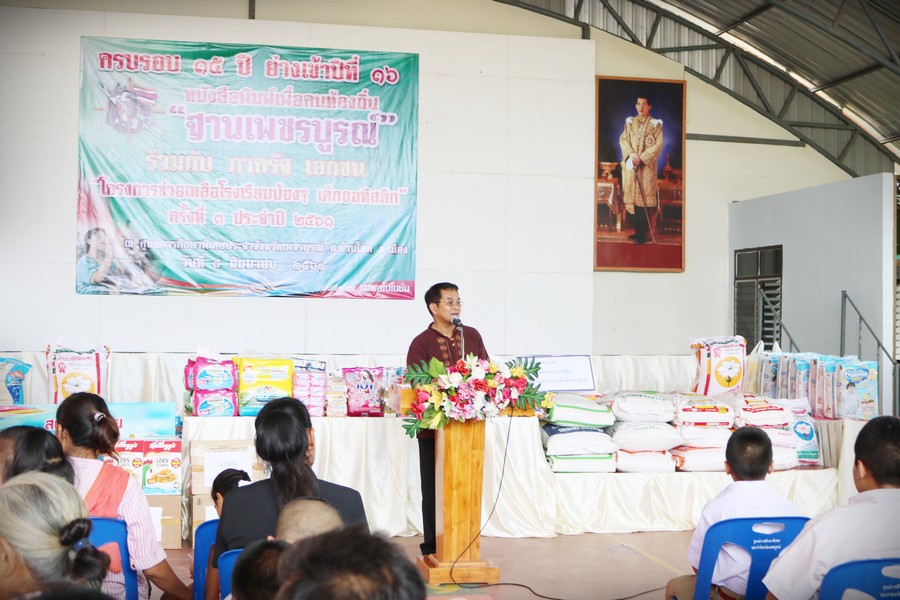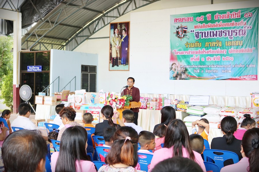 เป็นผู้กล่าวเปิดงานในวันครบรอบ 15 ปี หนังสือพิมพ์เพื่อคนท้องถิ่น ฐานเพชรบูรณ์ ใน “โครงการช่วยเหลือโรงเรียนน้องฯ เด็กออทิสติก”