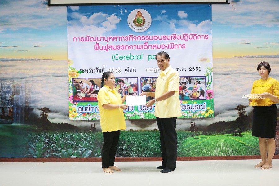 Palsy) ปีงบประมาณ ๒๕๖๑ ขึ้น เพื่อเป็นการเพิ่มองค์ความรู้ให้แก่บุคลากรในตำแหน่งพี่เลี้ยงเด็กพิการปฏิบัติงานร่วมกับครู และผู้ปกครอง ในการพัฒนานักเรียนที่รับบริการที่ศูนย์การศึกษาพิเศษ หน่วยบริการประจำอำเภอ