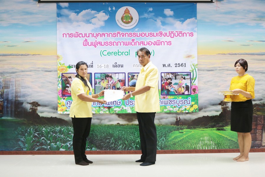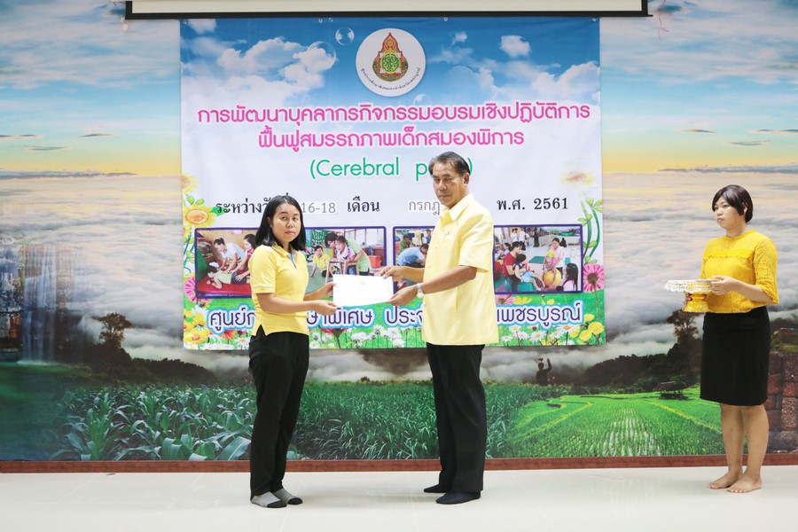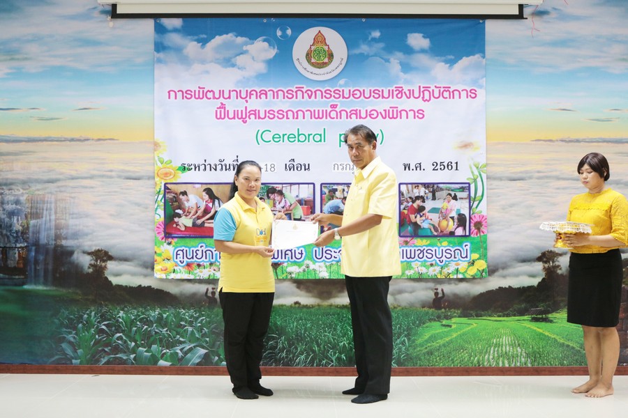 16-18 กรกฎาคม 2561 ศูนย์การศึกษาพิเศษ ประจำจังหวัดเพชรบูรณ์ จัดกิจกรรมการพัฒนาบุคลากรการอบรมเชิงปฏิบัติการฟื้นฟูสมรรถภาพเด็กสมองพิการ