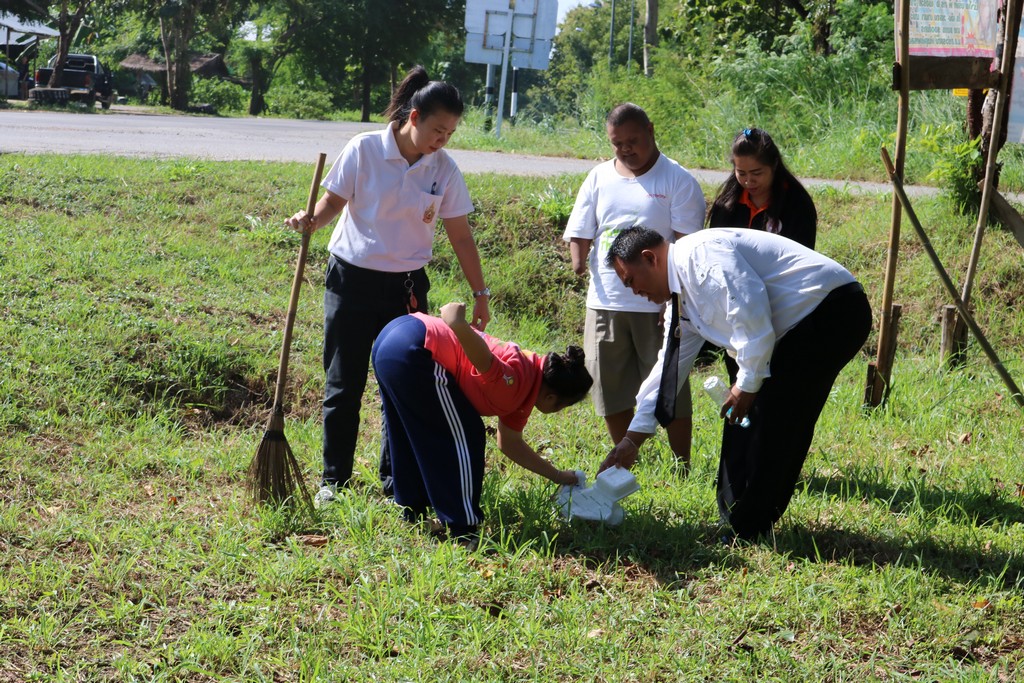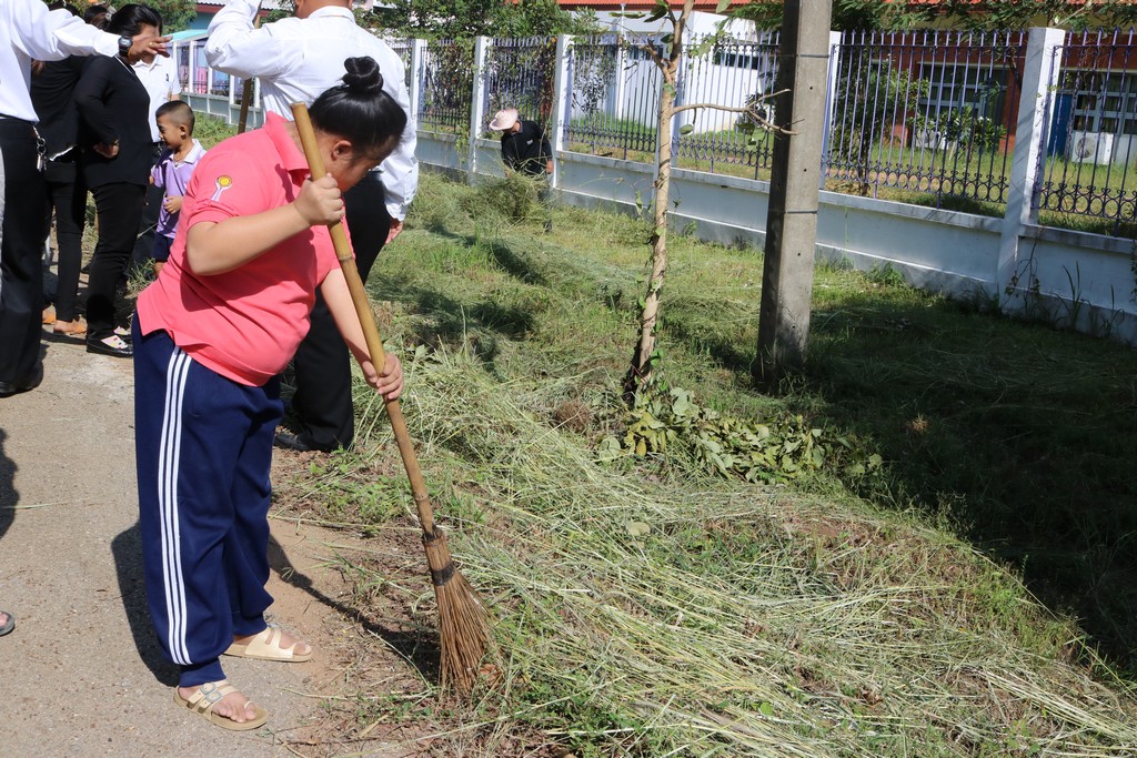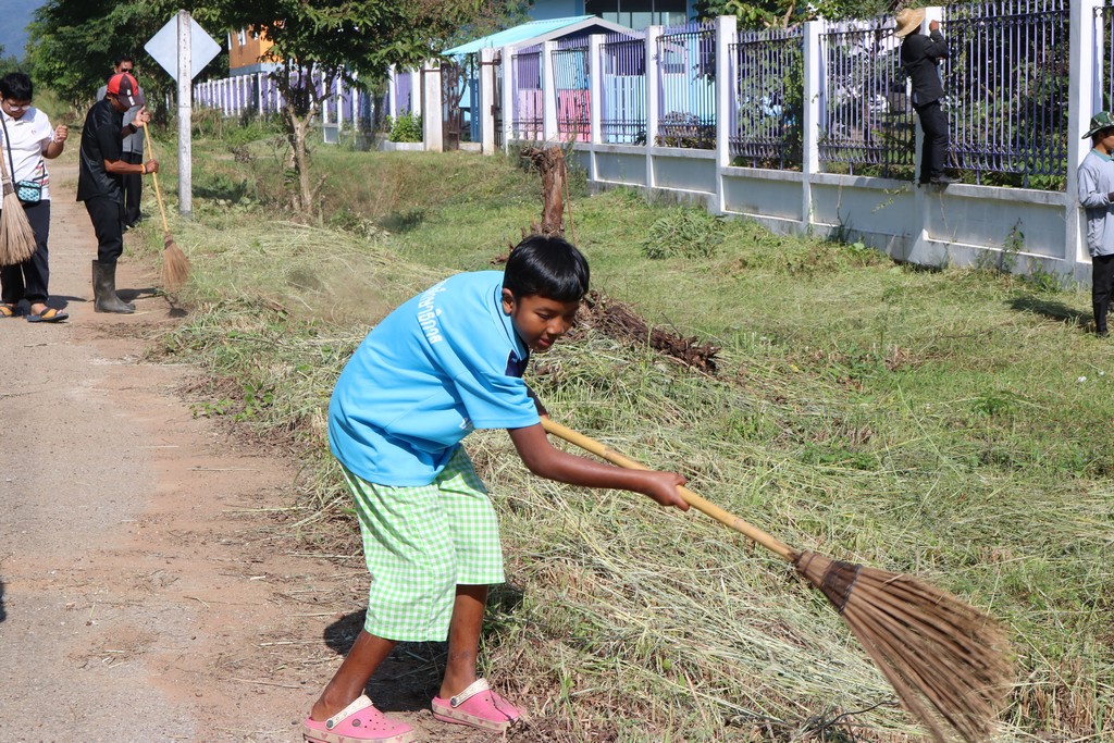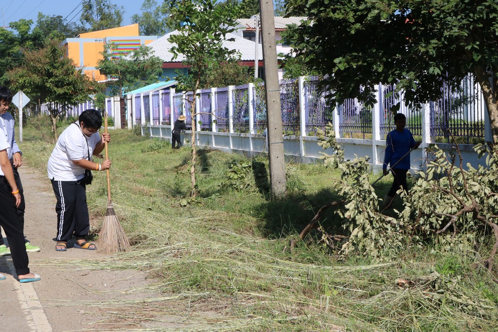 ผู้บริหาร คณะครู บุคลากรและนักเรียนร่วมกันทำความสะอาดบริเวณรอบนอกศูนยฯ