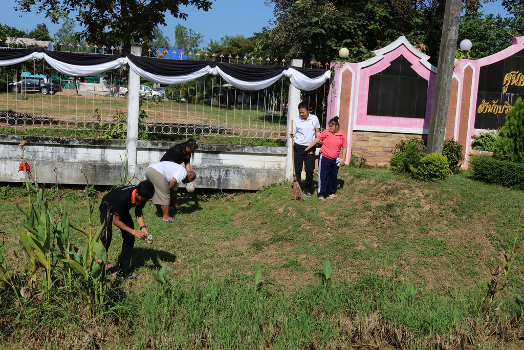 ผู้บริหาร คณะครู บุคลากรและนักเรียนร่วมกันทำความสะอาดบริเวณรอบนอกศูนยฯ