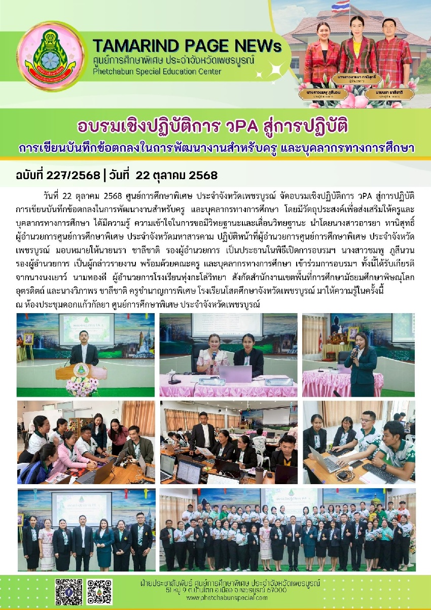 อบรมเชิงปฏิบัติการ วPA สู่การปฏิบัติการเขียนบันทึกข้อตกลงในการพัฒนางานสำหรับครู และบุคลากรทางการศึกษา