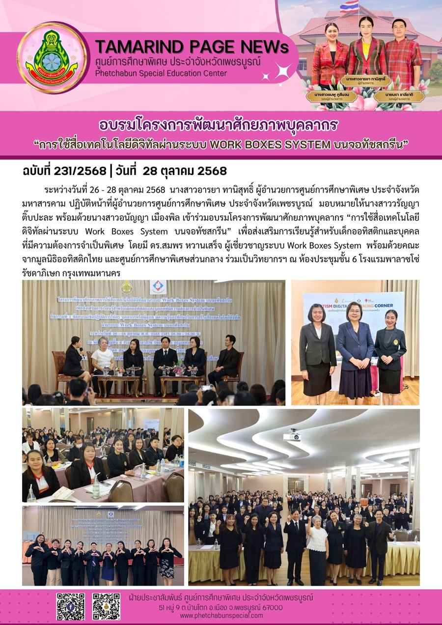 เข้าร่วมอบรมโครงการพัฒนาศักยภาพบุคลากร “การใช้สื่อเทคโนโลยีดิจิทัลผ่านระบบ Work Boxes System บนจอทัชสกรีน