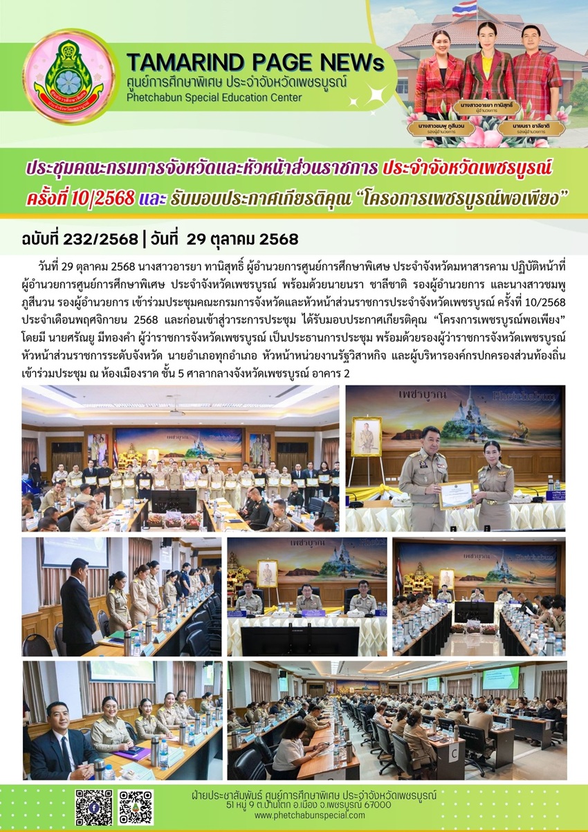 เข้าร่วมประชุมคณะกรมการจังหวัดและหัวหน้าส่วนราชการประจำจังหวัดเพชรบูรณ์ ครั้งที่ 10/2568 และ รับมอบประกาศเกียรติคุณ “โครงการเพชรบูรณ์พอเพียง”