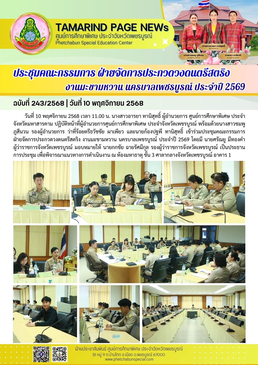 ประชุมคณะกรรมการฝ่ายจัดการประกวดวงดนตรีสตริง งานมะขามหวาน นครบาลเพชรบูรณ์ ประจำปี 2569