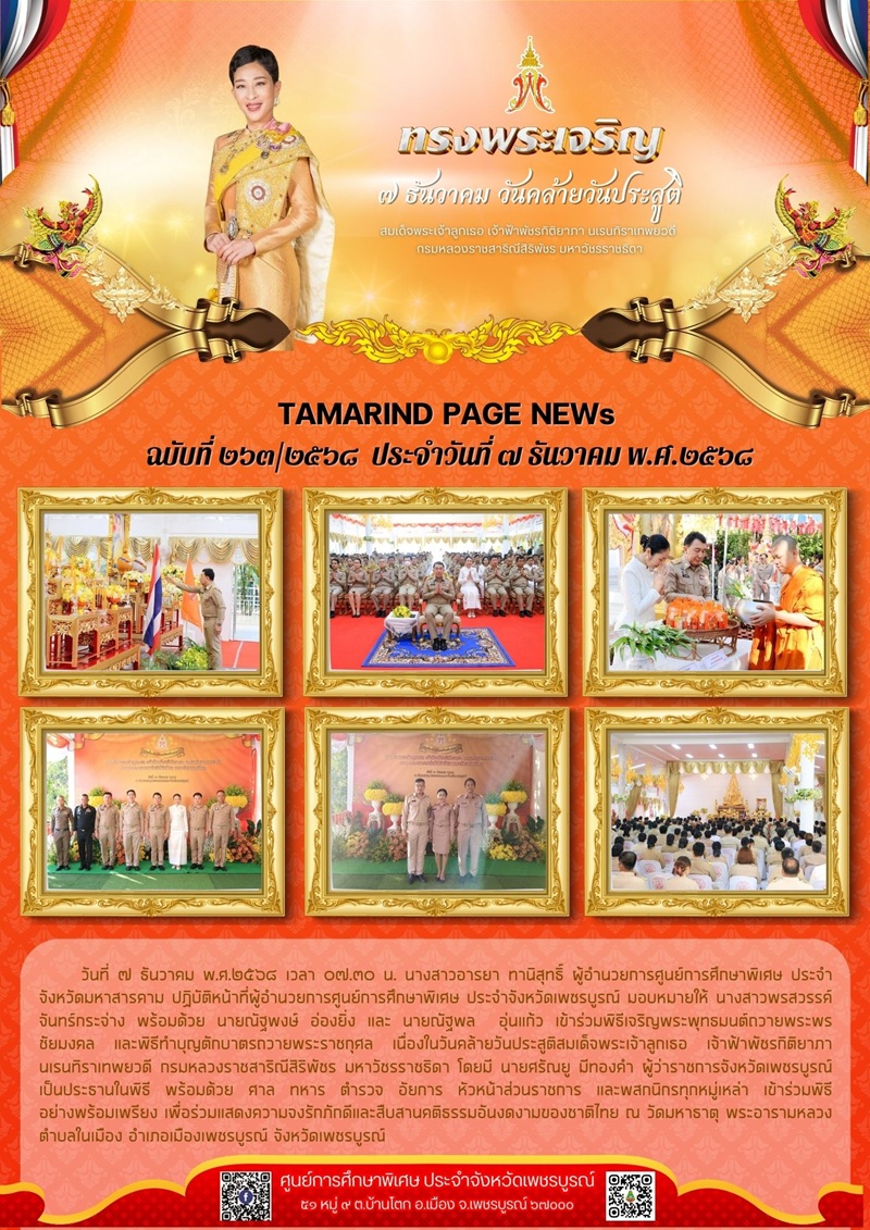 ร่วมพิธีเจริญพระพุทธมนต์ถวายพระพรชัยมงคล และพิธีทำบุญตักบาตรถวายพระราชกุศล เนื่องในวันคล้ายวันประสูติสมเด็จพระเจ้าลูกเธอ เจ้าฟ้าพัชรกิติยาภา นเรนทิราเทพยวดี กรมหลวงราชสาริณีสิริพัชร มหาวัชรราชธิดา