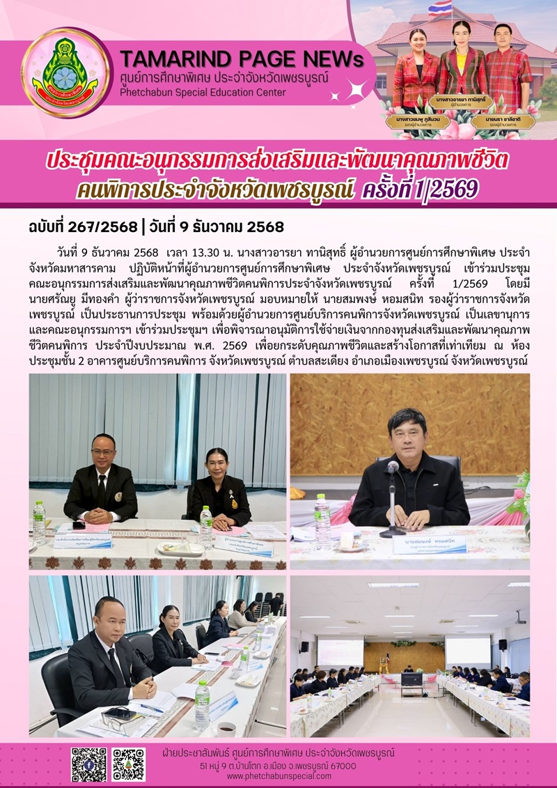 ประชุมคณะอนุกรรมการส่งเสริมและพัฒนาคุณภาพชีวิตคนพิการประจำจังหวัดเพชรบูรณ์ ครั้งที่ 1/2569