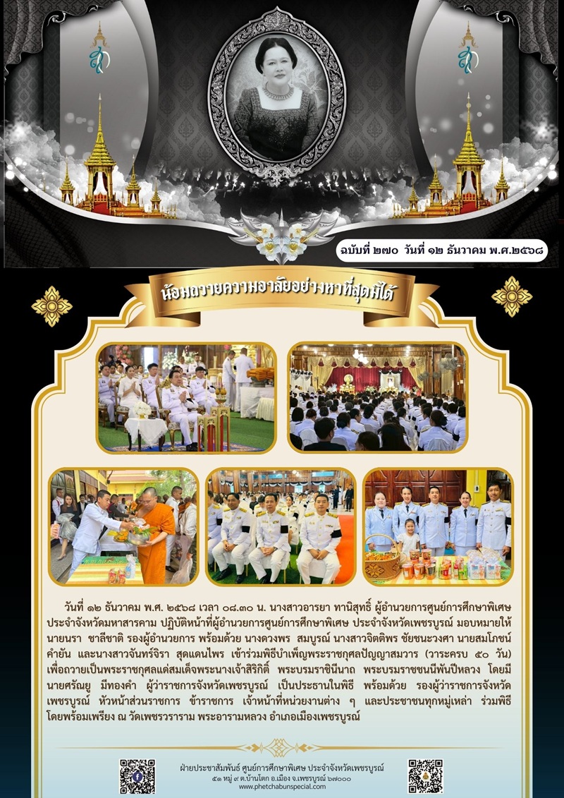 ร่วมพิธีบำเพ็ญพระราชกุศลปัญญาสมวาร (วาระครบ ๕๐ วัน) เพื่อถวายเป็นพระราชกุศลแด่สมเด็จพระนางเจ้าสิริกิติ์ พระบรมราชินีนาถ พระบรมราชชนนีพันปีหลวง
