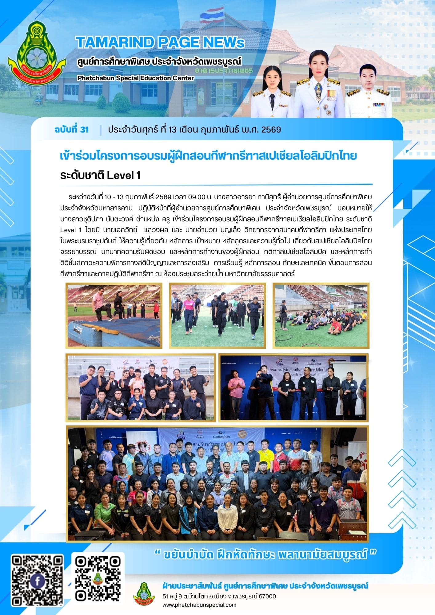 เข้าร่วมโครงการอบรมผู้ฝึกสอนกีฬากรีฑาสเปเชียลโอลิมปิกไทย ระดับชาติ Level 1