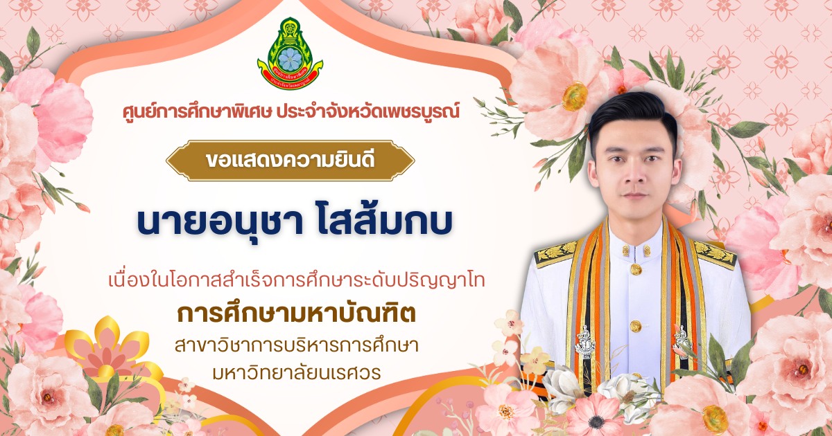 ศูนย์การศึกษาพิเศษ ประจำจังหวัดเพชรบูรณ์ ขอแสดงความยินดีกับ นายอนุชา โสส้มกบ เนื่องในโอกาสสำเร็จการศึกษาระดับปริญญาโท ด้วยความยินดียิ่ง
