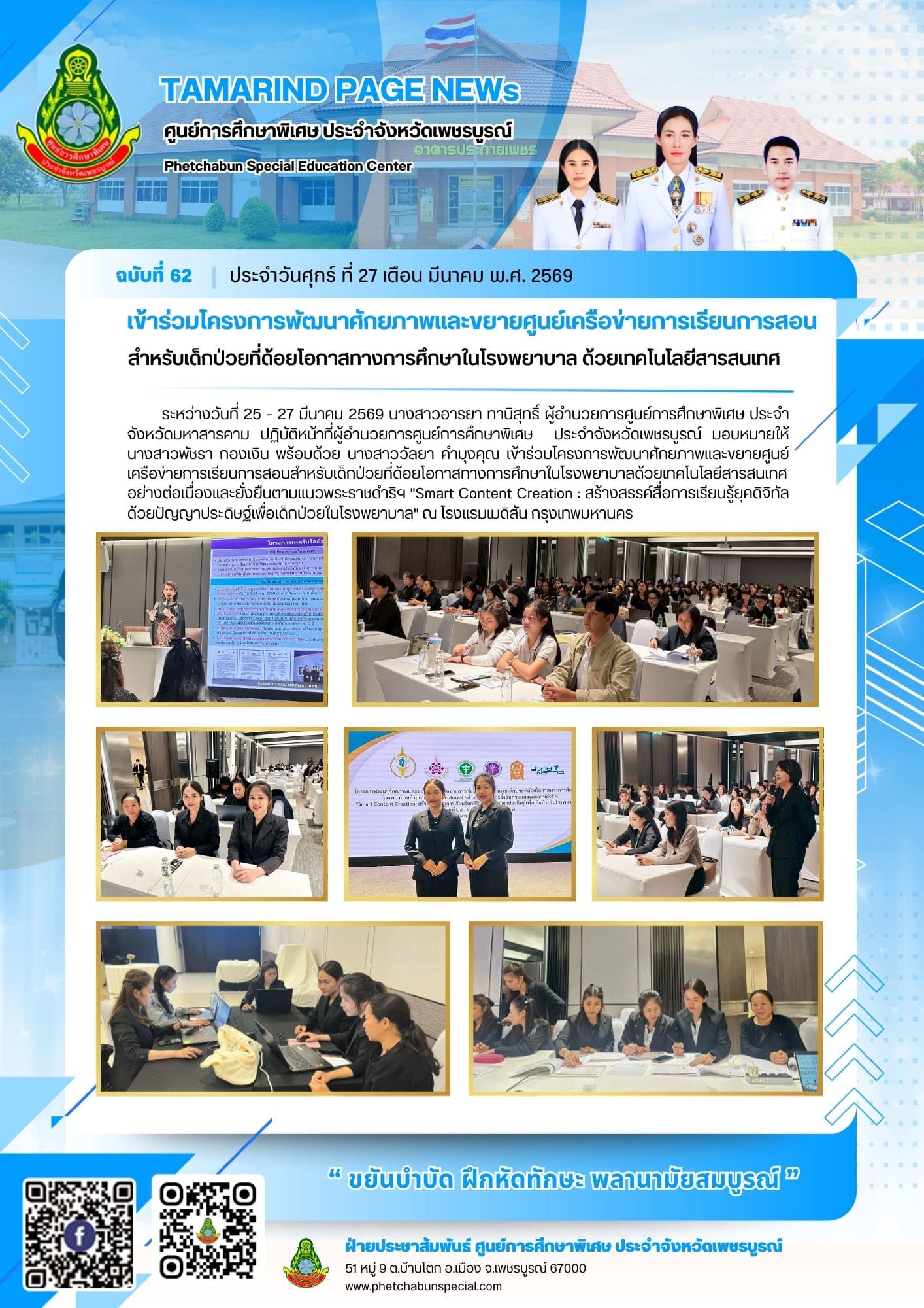 เข้าร่วมโครงการพัฒนาศักยภาพและขยายศูนย์เครือข่ายการเรียนการสอน สำหรับเด็กป่วยที่ด้อยโอกาสทางการศึกษาในโรงพยาบาล ด้วยเทคโนโลยีสารสนเทศ