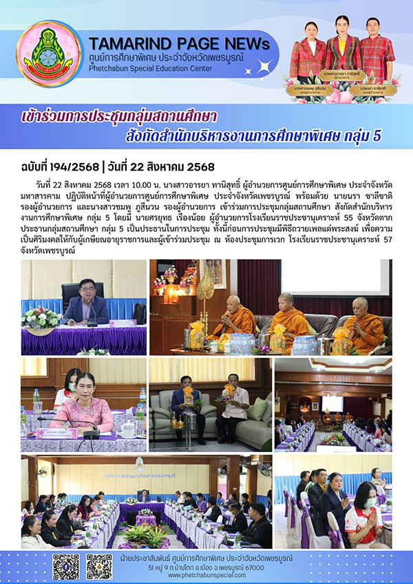 ร่วมการประชุมกลุ่มสถานศึกษา สำนักบริหารงานการศึกษาพิเศษ กลุ่ม 5